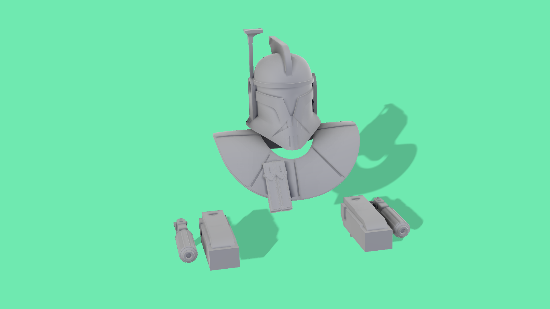 3D printed 2003 Clone Trooper Armor and Accessories for 3.75” and 6" figures.