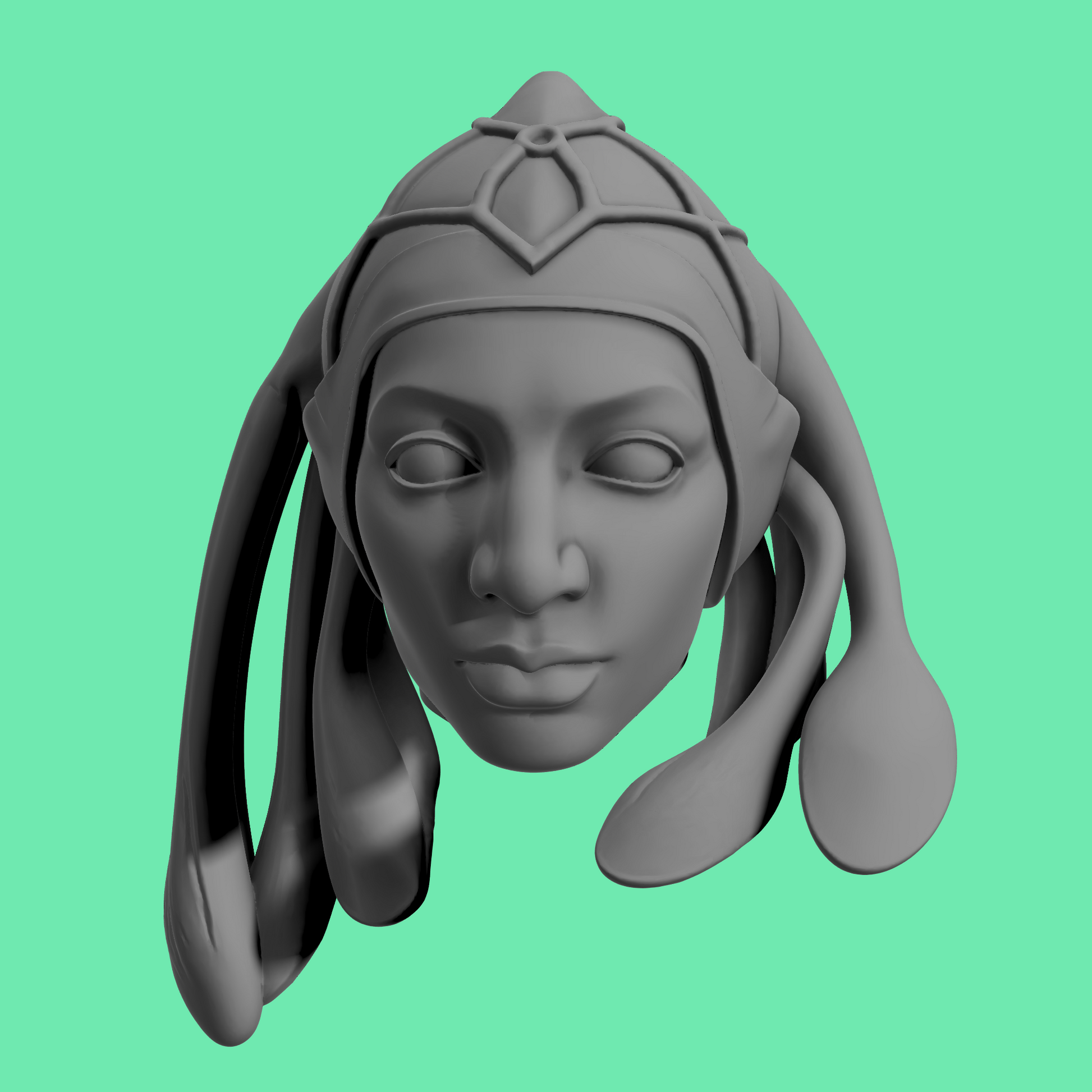 3D printed Adi Gallia head sculpt for 3.75" and 6" figures.