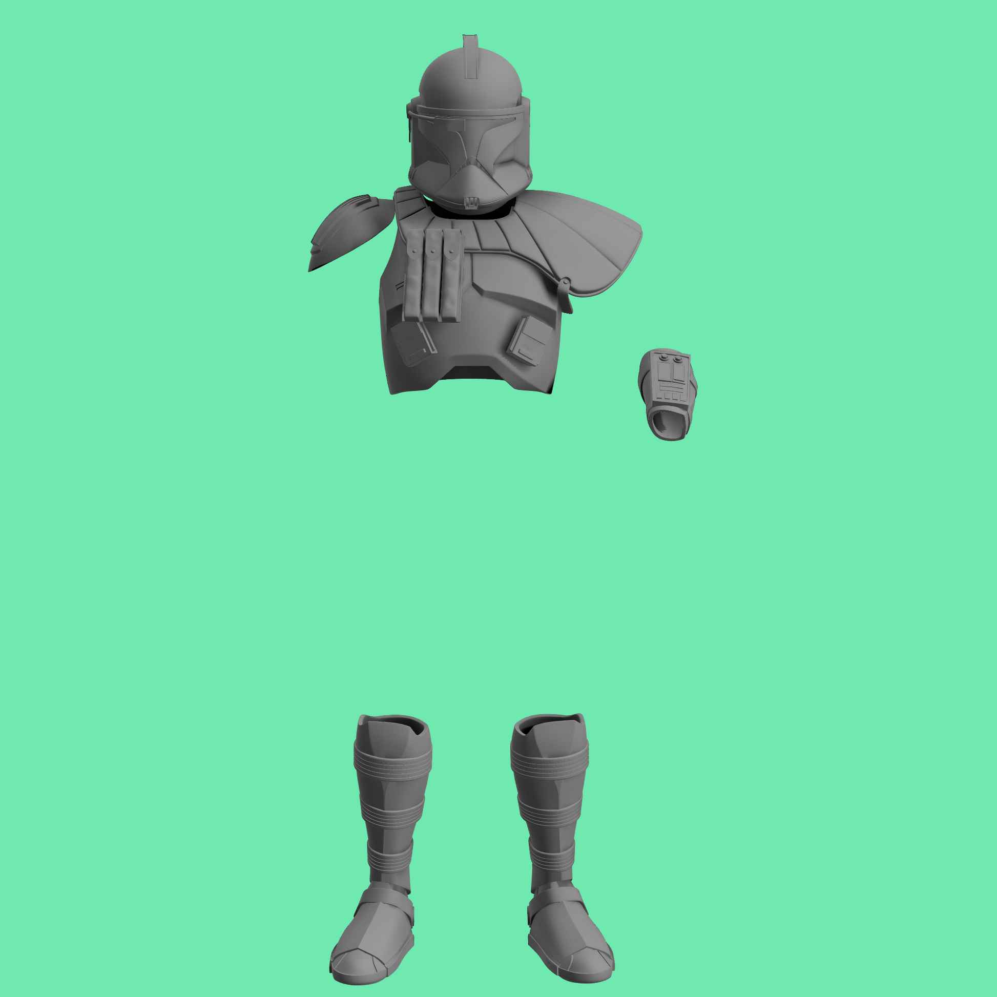 3D printed Arc Alpha-17 armor for 3.75" and 6" figures.