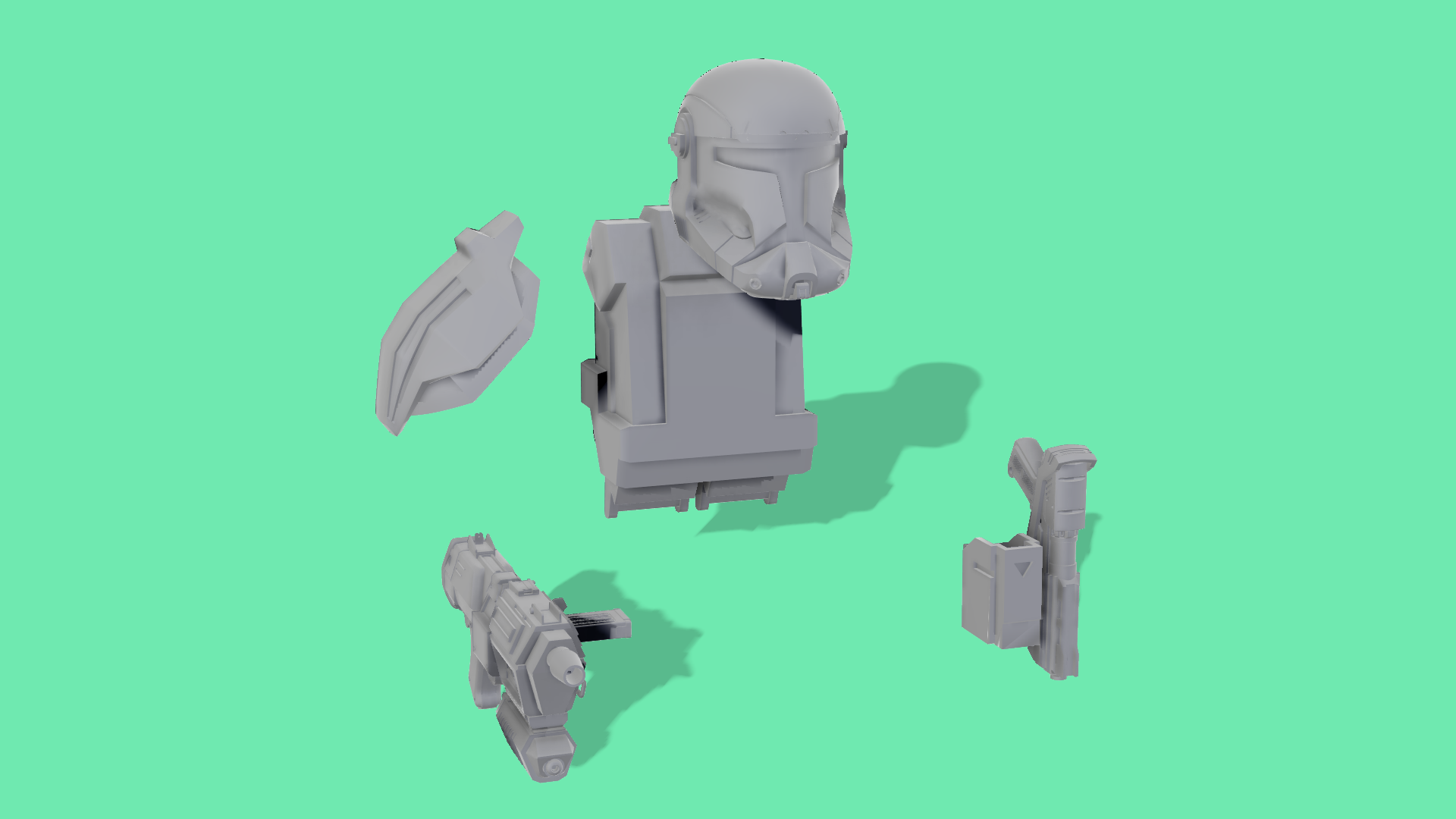 3D printed Boss Commando Armor and Accessories for 3.75" and 6" figures.