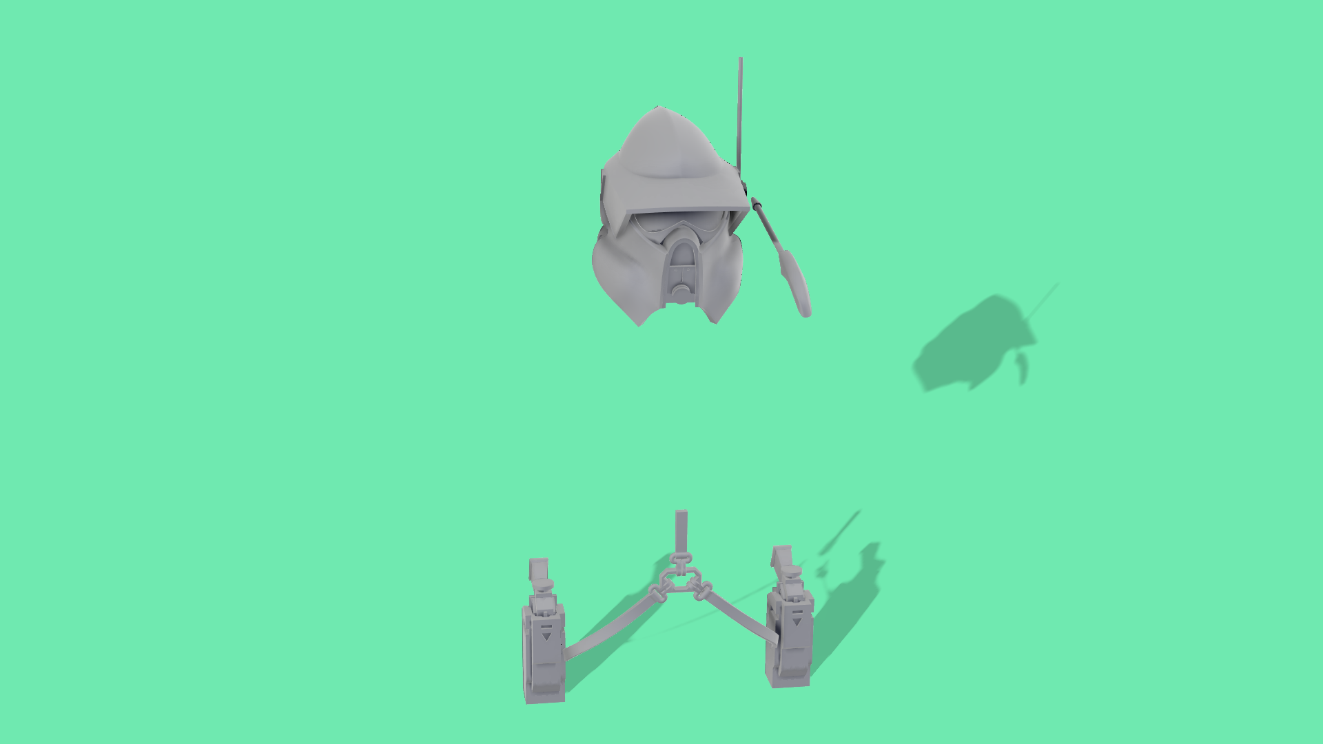 3D printed Captain Hound armor and accessories for 3.75" and 6" figures.