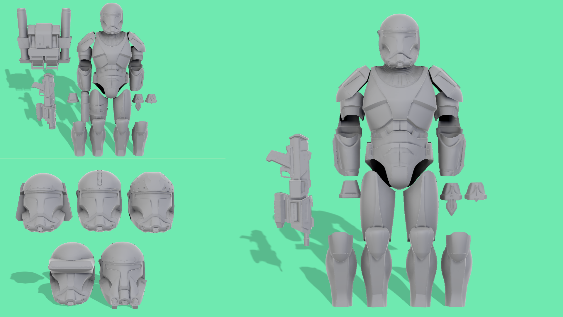 3D printed Republic Clone Commando parts for 3.75" and 6" figures.