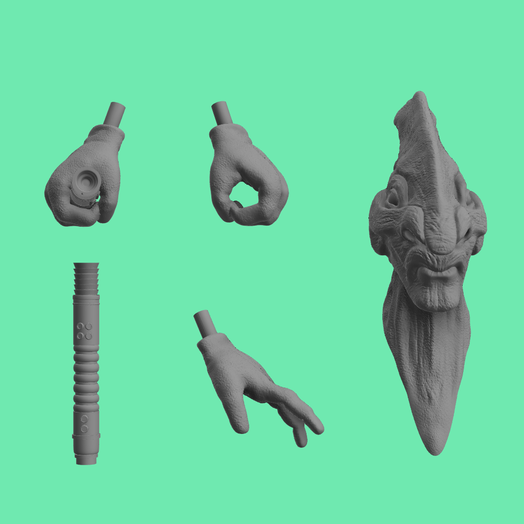 3D printed Coleman Trebor head sculpt and accessories for 3.75", 6" and 12" figures.