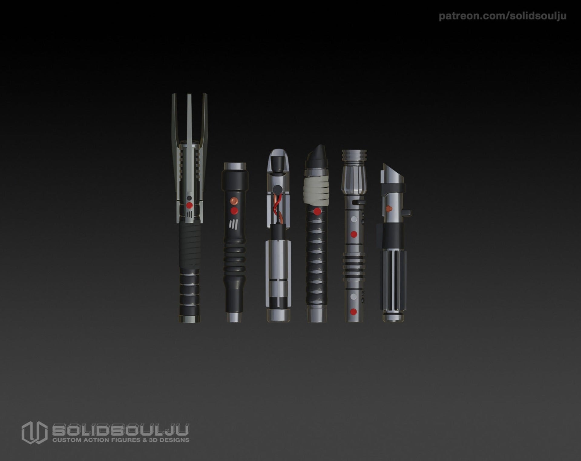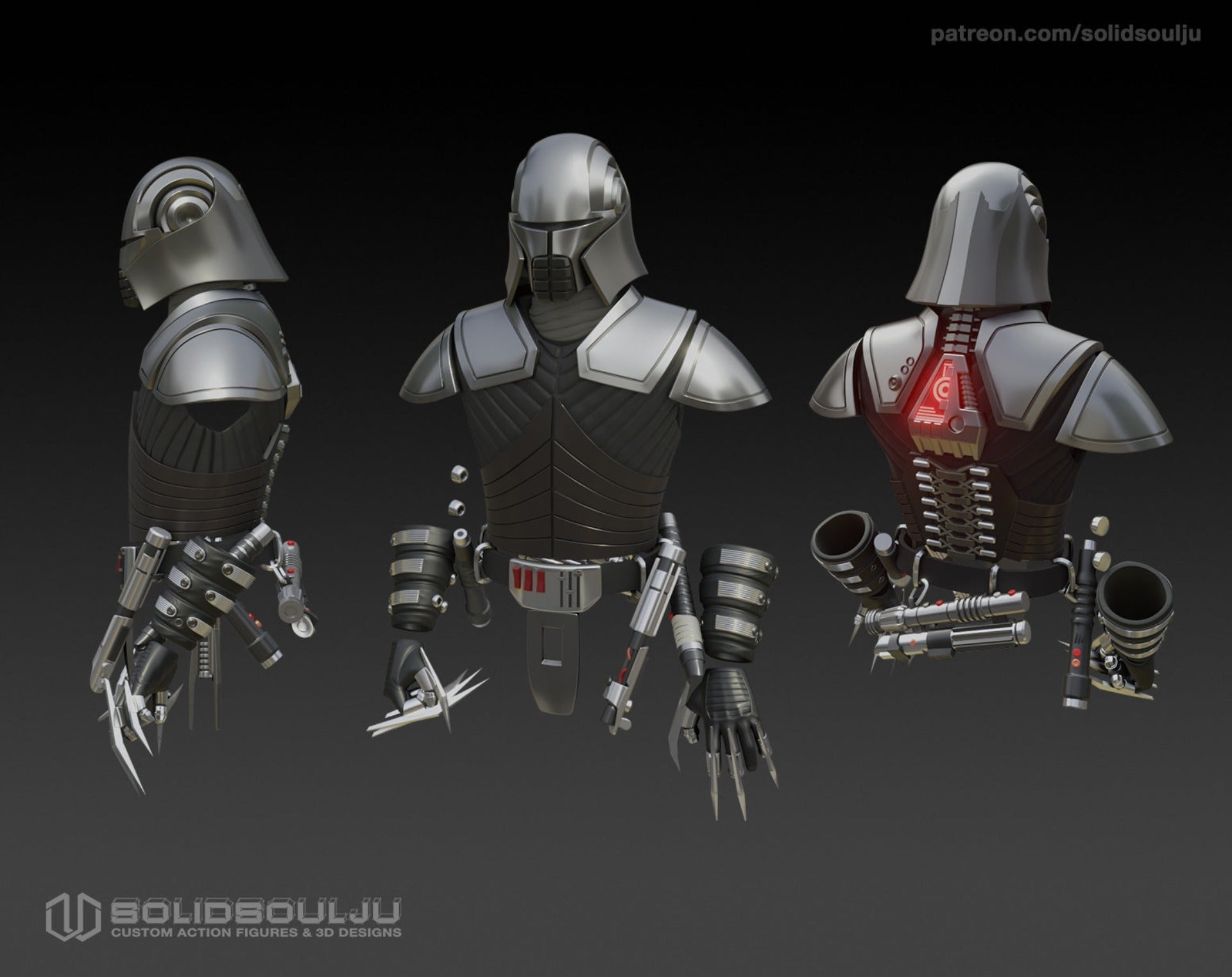 3D printed Starkiller armor and accessories for 3.75" and 6" figures.