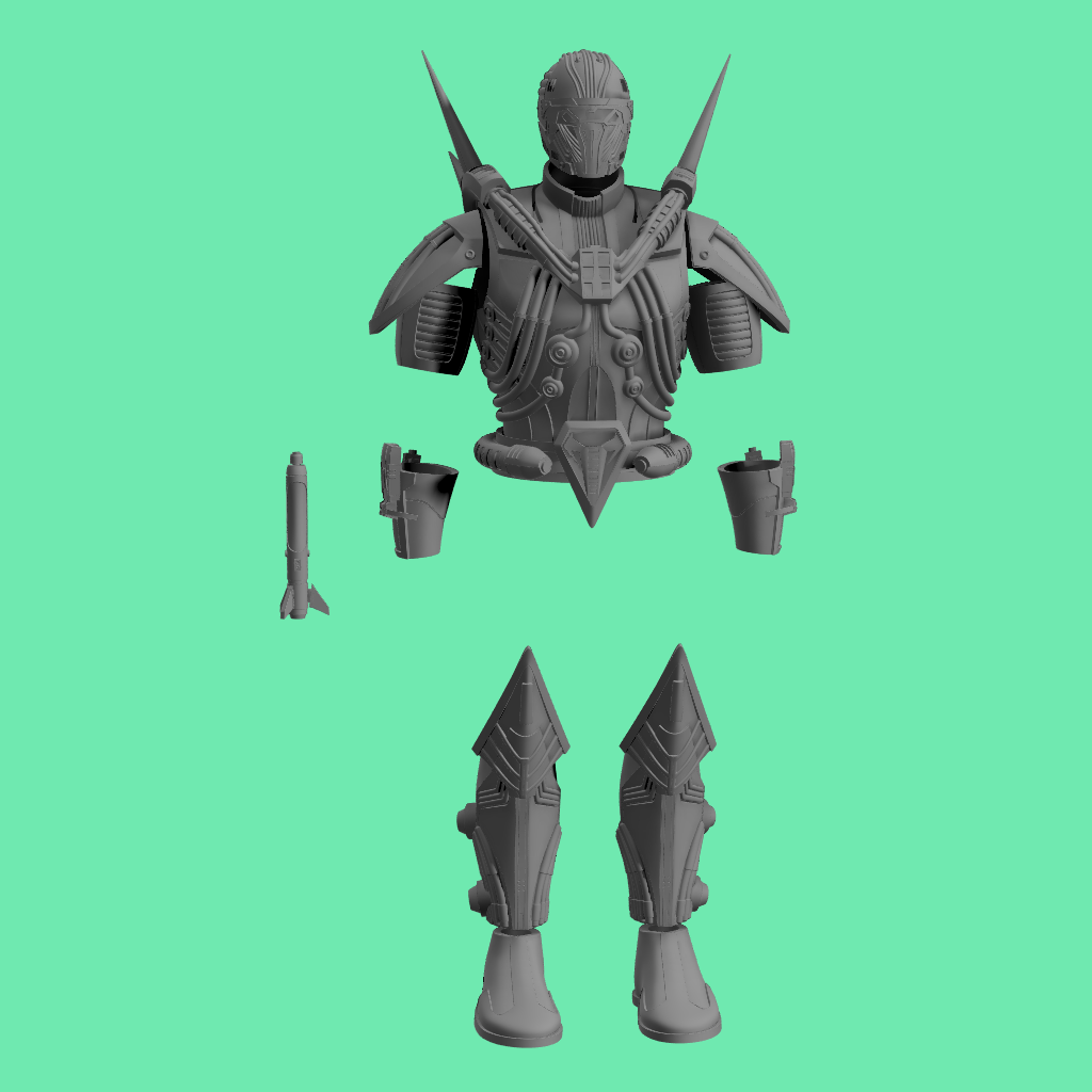 3D printed Darth Marr armor and accessories for 3.75" and 6" figures.