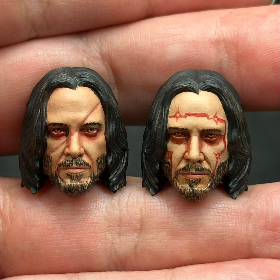 3D printed Darth Revan head sculpts for 3.75" and 6" figures.