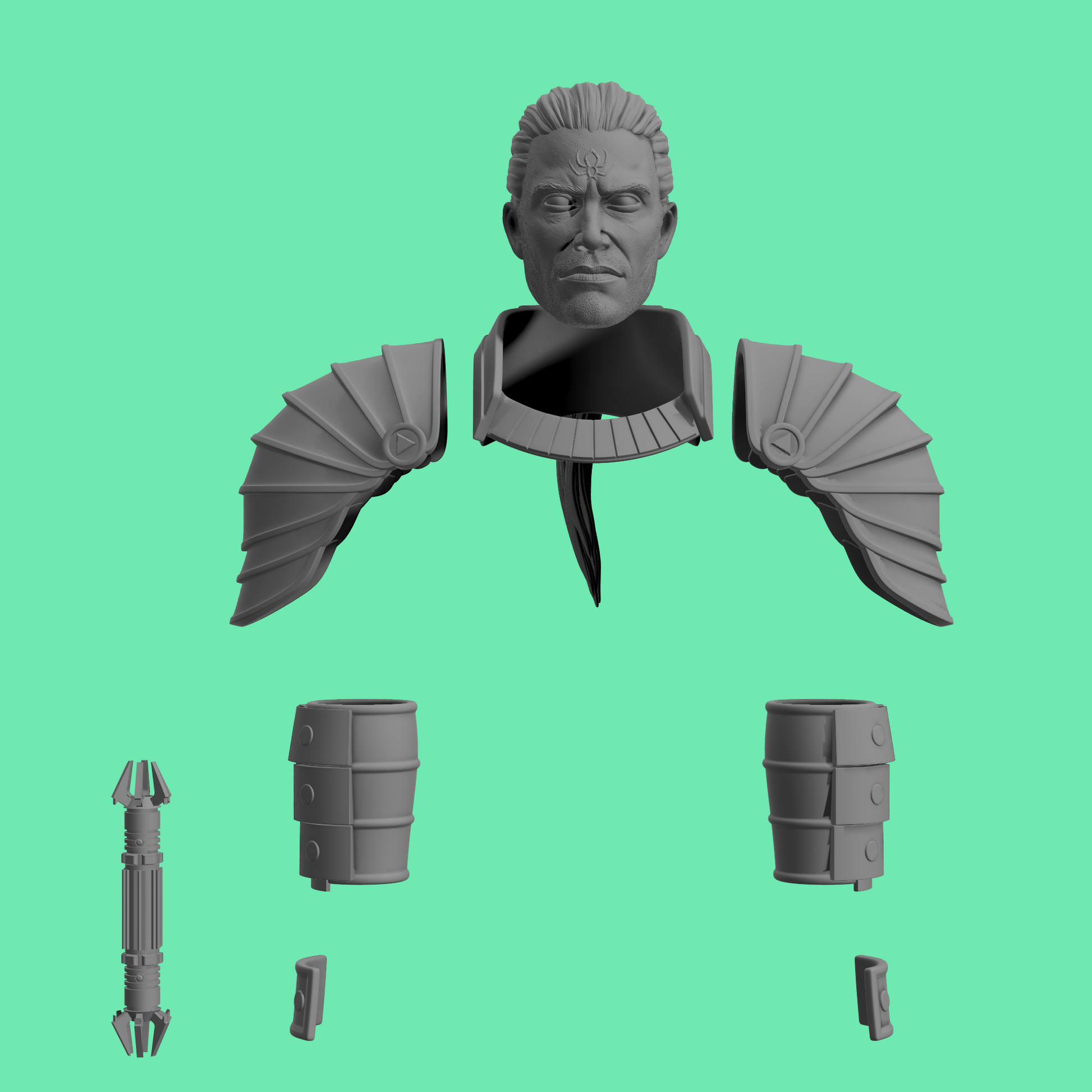 3D printed Exar Kun head sculpt and armor for 3.75" and 6" figures.