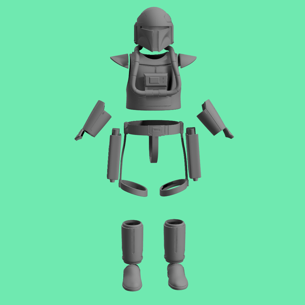 3D printed Fenn Rau armor and accessories for 3.75", 6" and 7" figures.