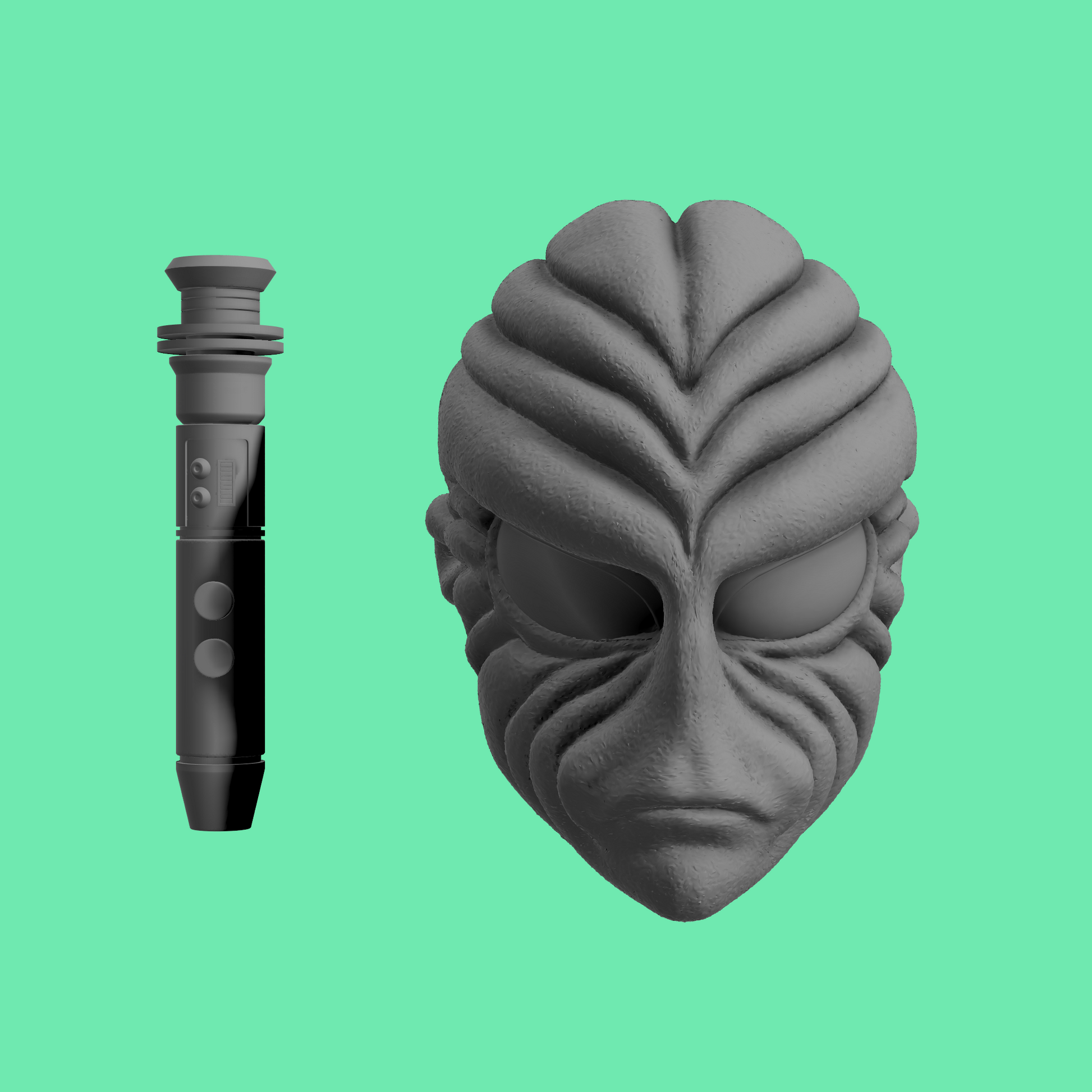 3D printed Jedi Hasley head sculpt and saber hilt for 3.75" and 6" figures.