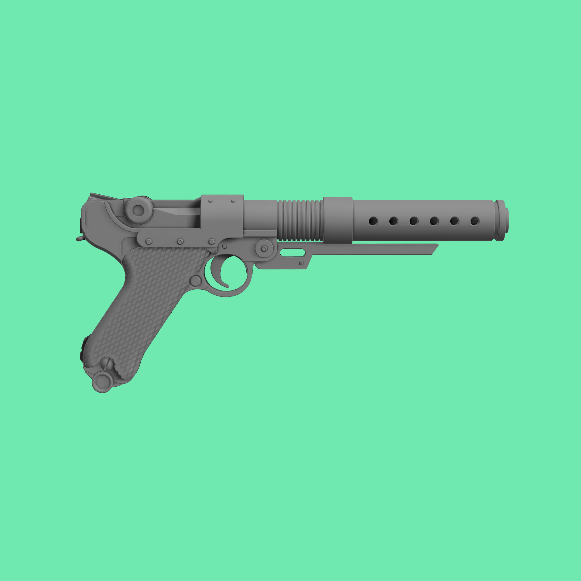 3D printed Jyn A-180 blaster variants for 3.75", 6" and 12" figures.