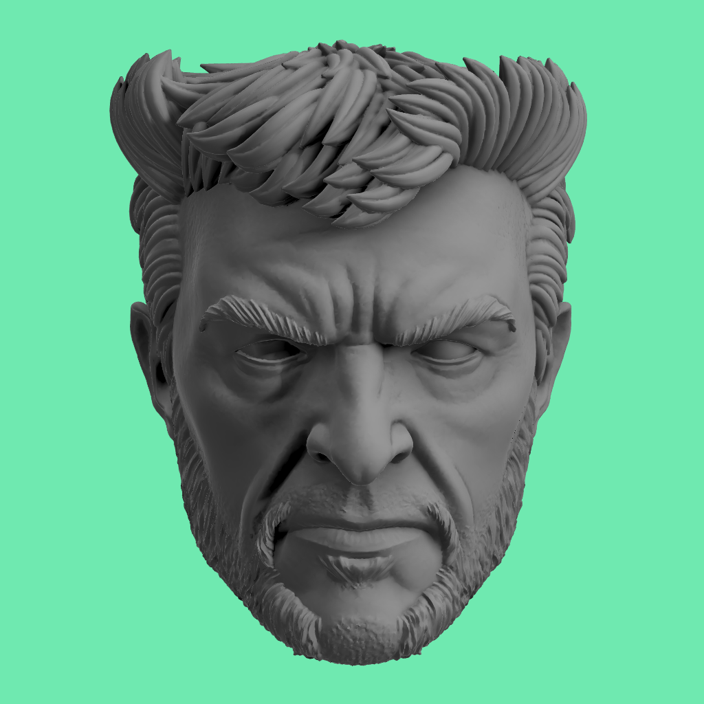3D printed Logan Wolverine head sculpt for 6" Marvel Legends figures.
