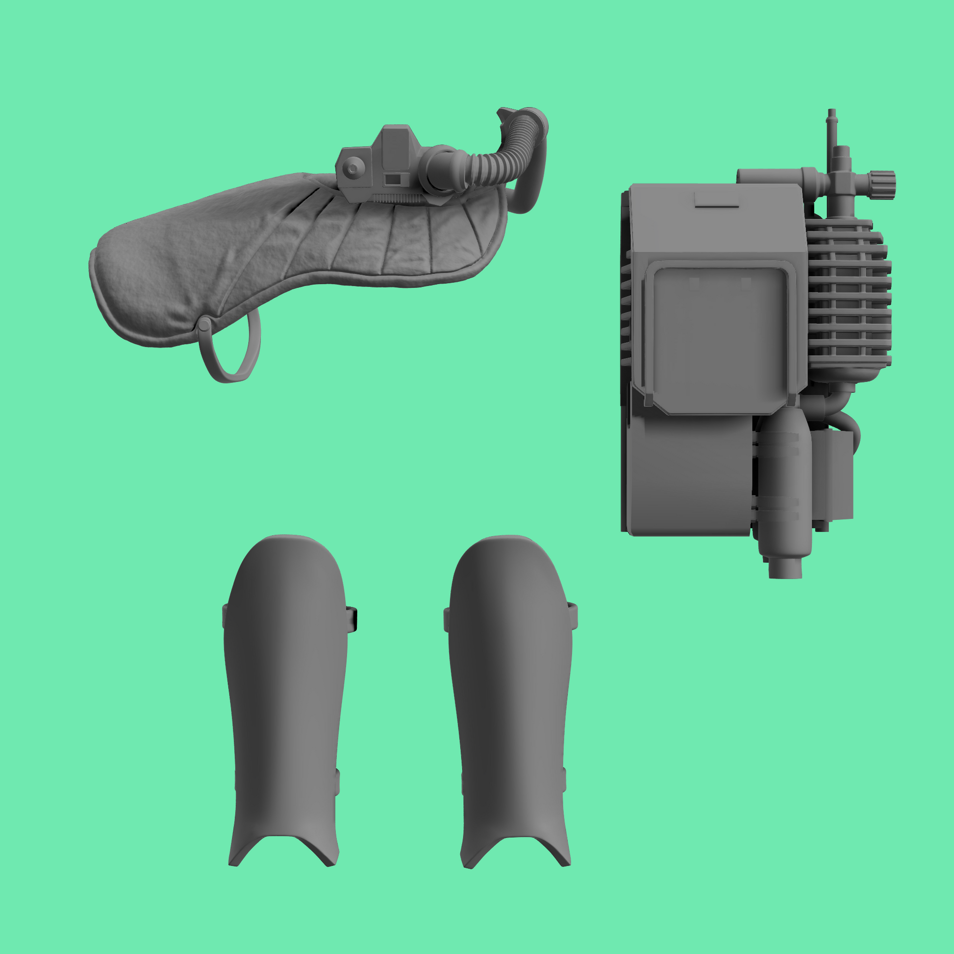 3D printed Magma trooper accessories for 3.75" and 6" figures.