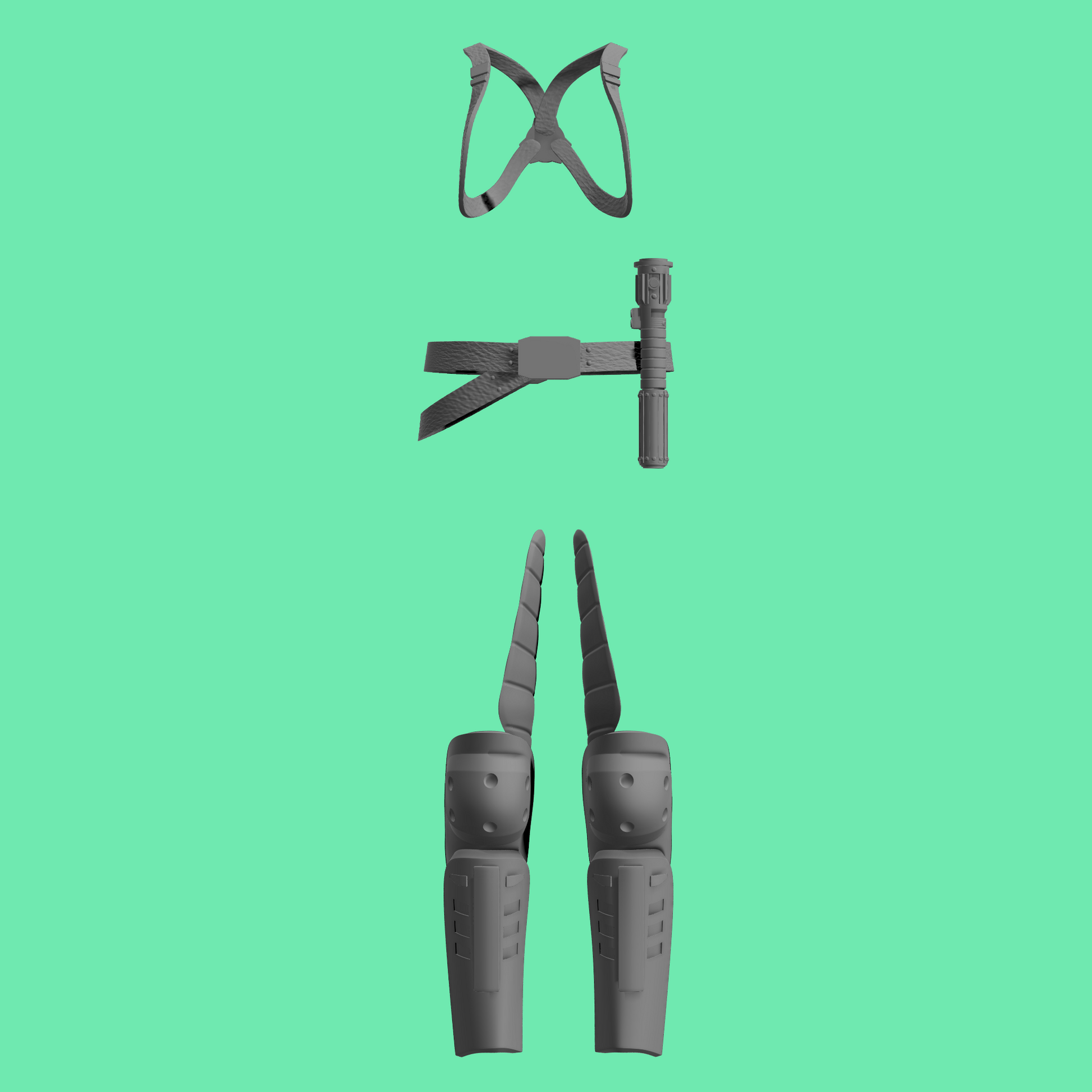 3D printed Mara Jade upgrade accessories for 3.75" and 6" figures.