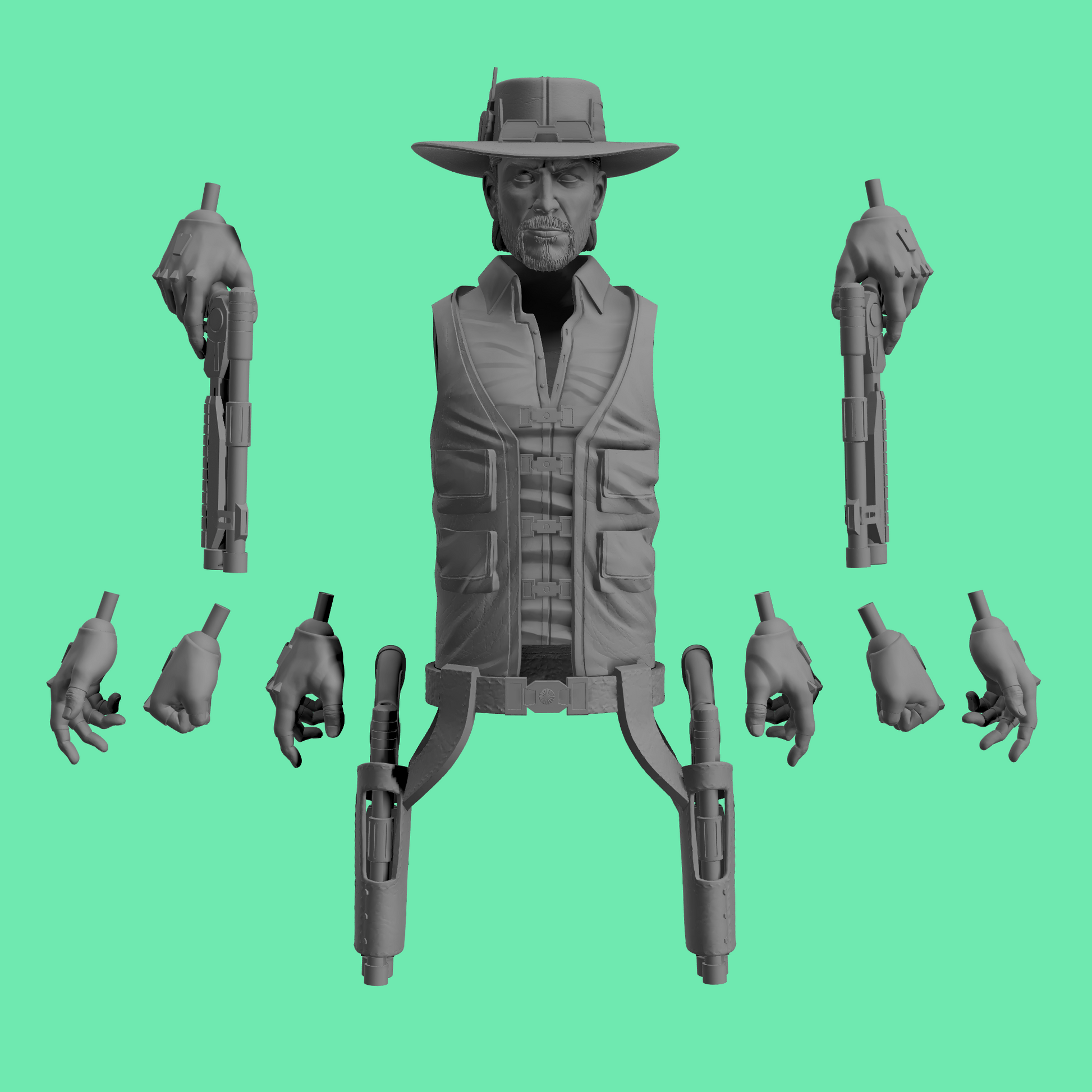 3D printed Nico Okarr head sculpt and accessories for 3.75" and 6" figures.