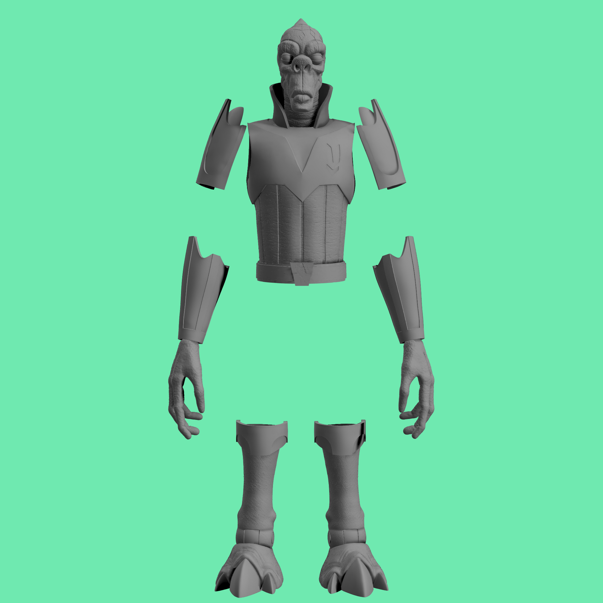 3D printed Osi Sobeck head sculpt, armor and accessories for 3.75" and 6" figures.