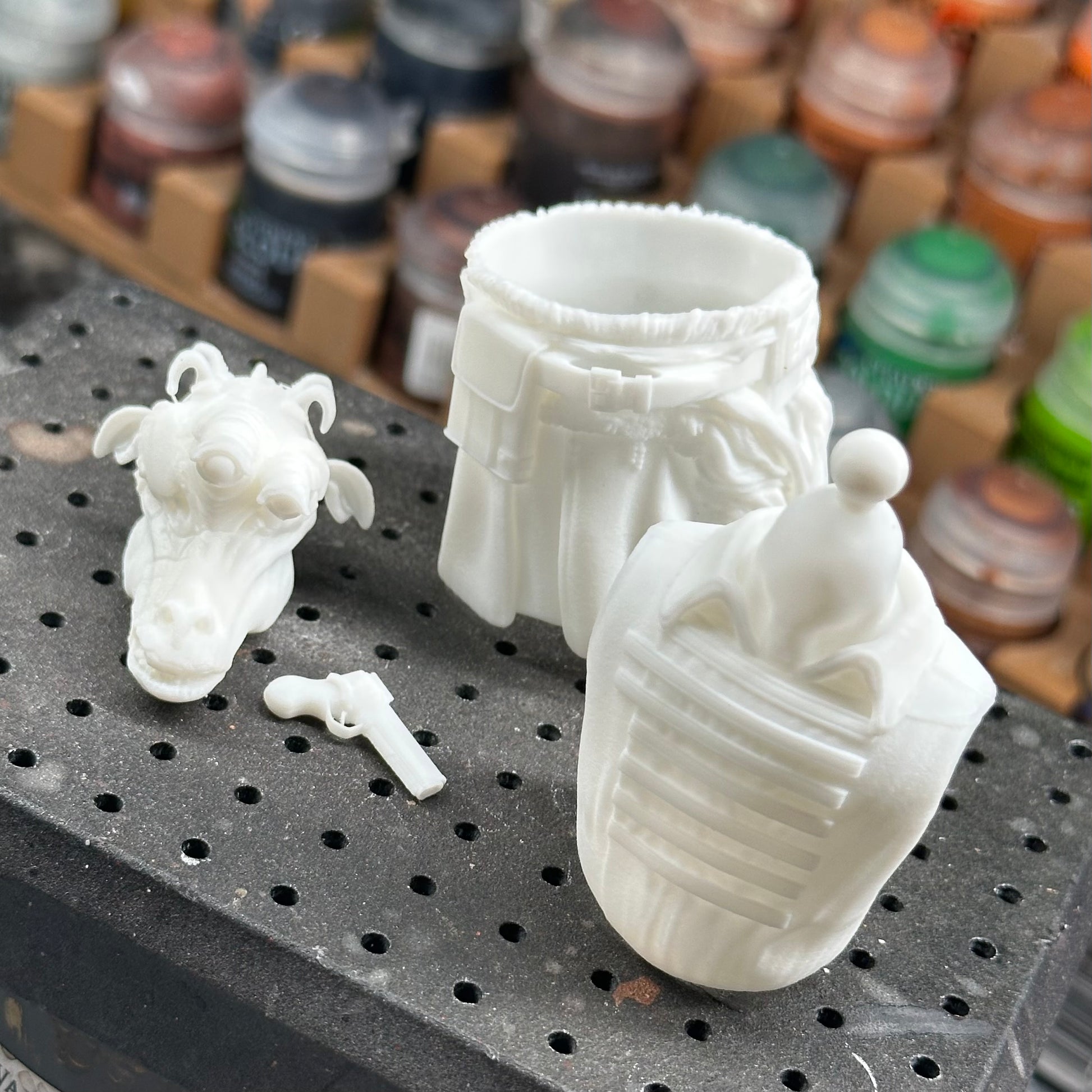 3D resin printed parts can be fragile so please take caution when painting or applying to figures.
