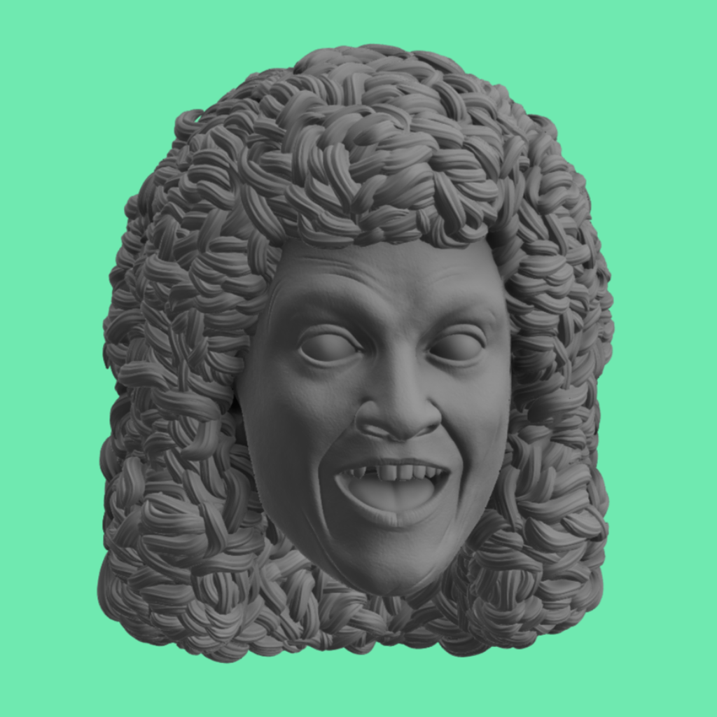 3D printed Peli Motto head sculpt for 3.75", 6" and 12" figures.