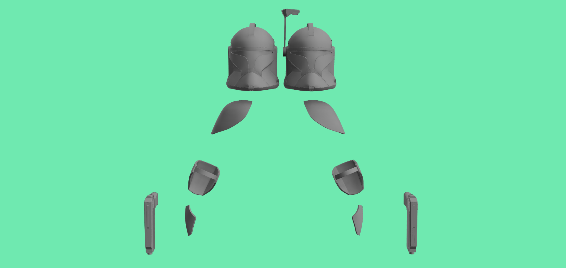 3D printed Phase 1 clone armor for 3.75" and 6" figures.