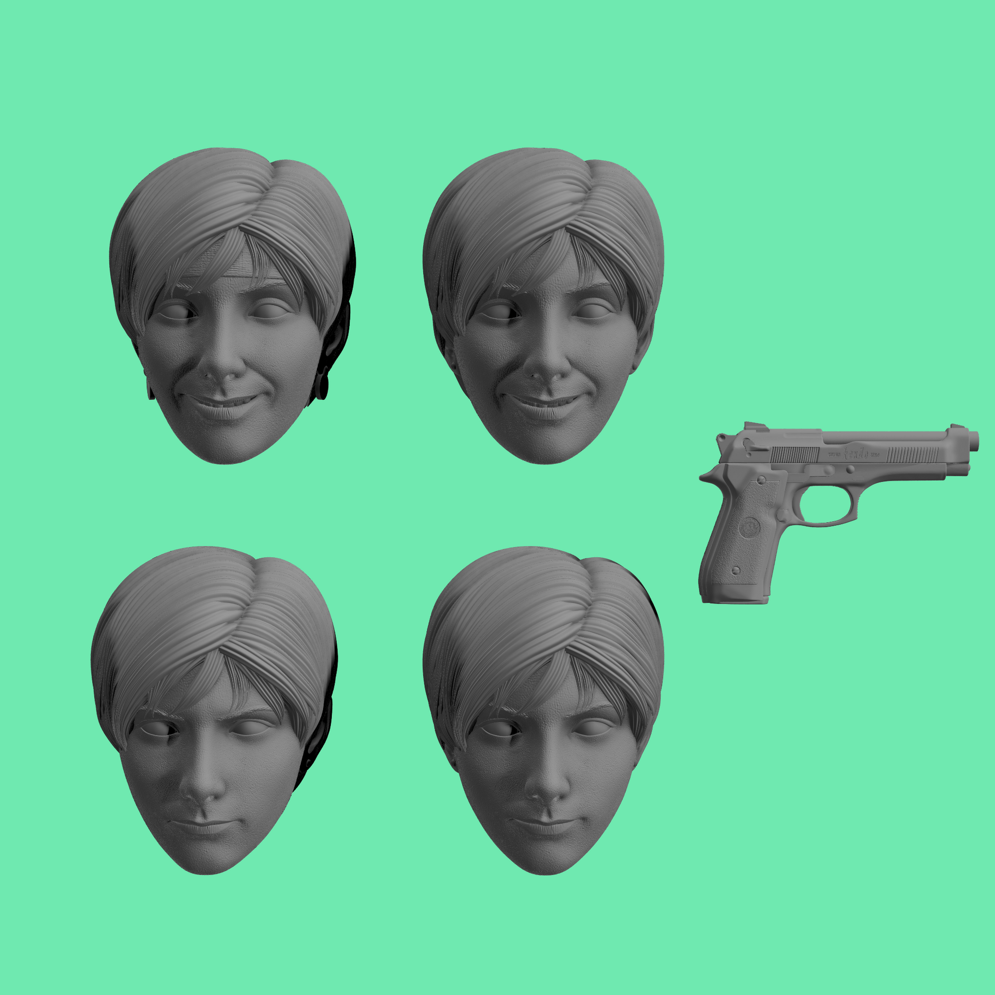 3D printed Rebecca Chambers head sculpts for 3.75", 6" and 6" Marvel Legends figures.