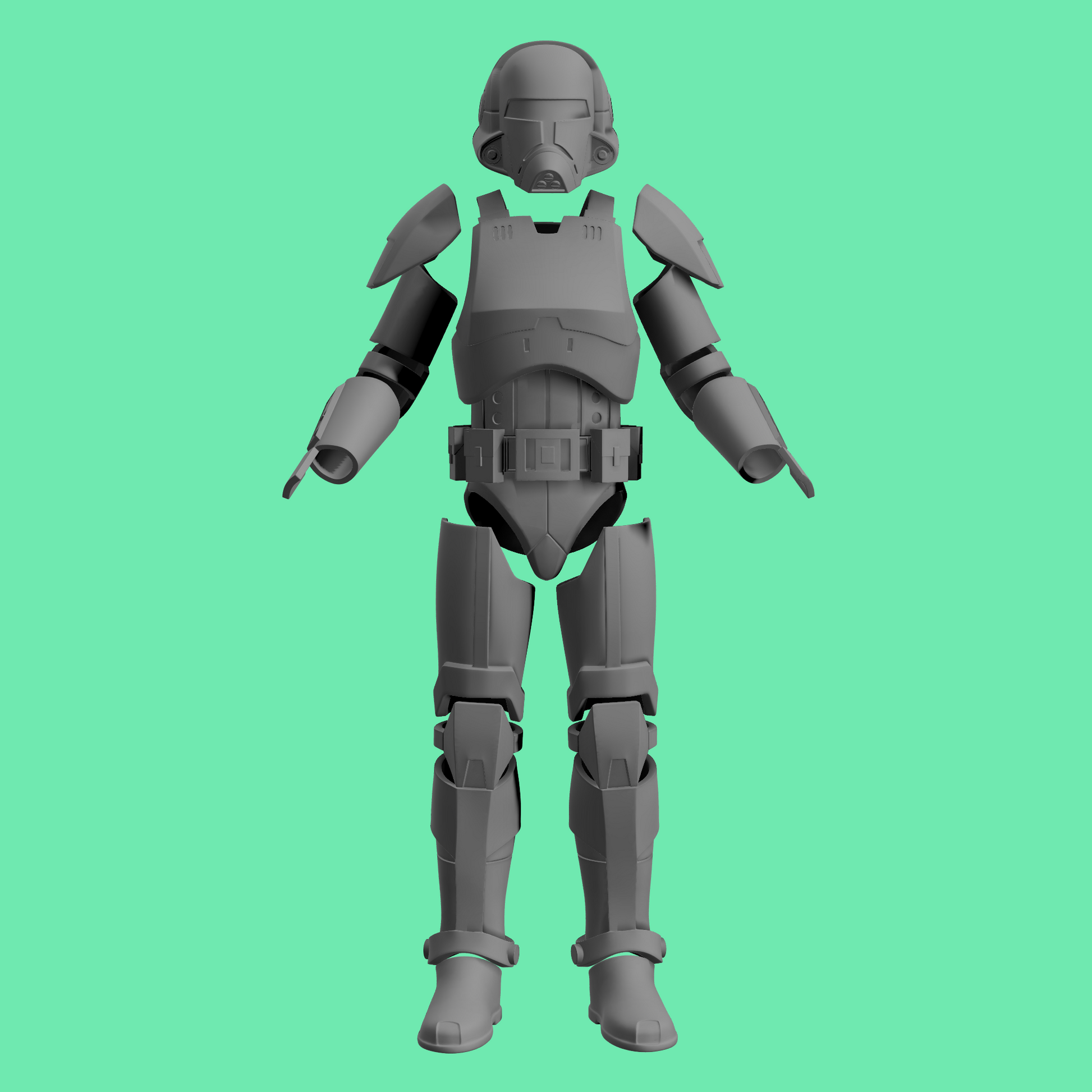 3D printed Republic Trooper armor and accessories for 3.75" and 6" figures.