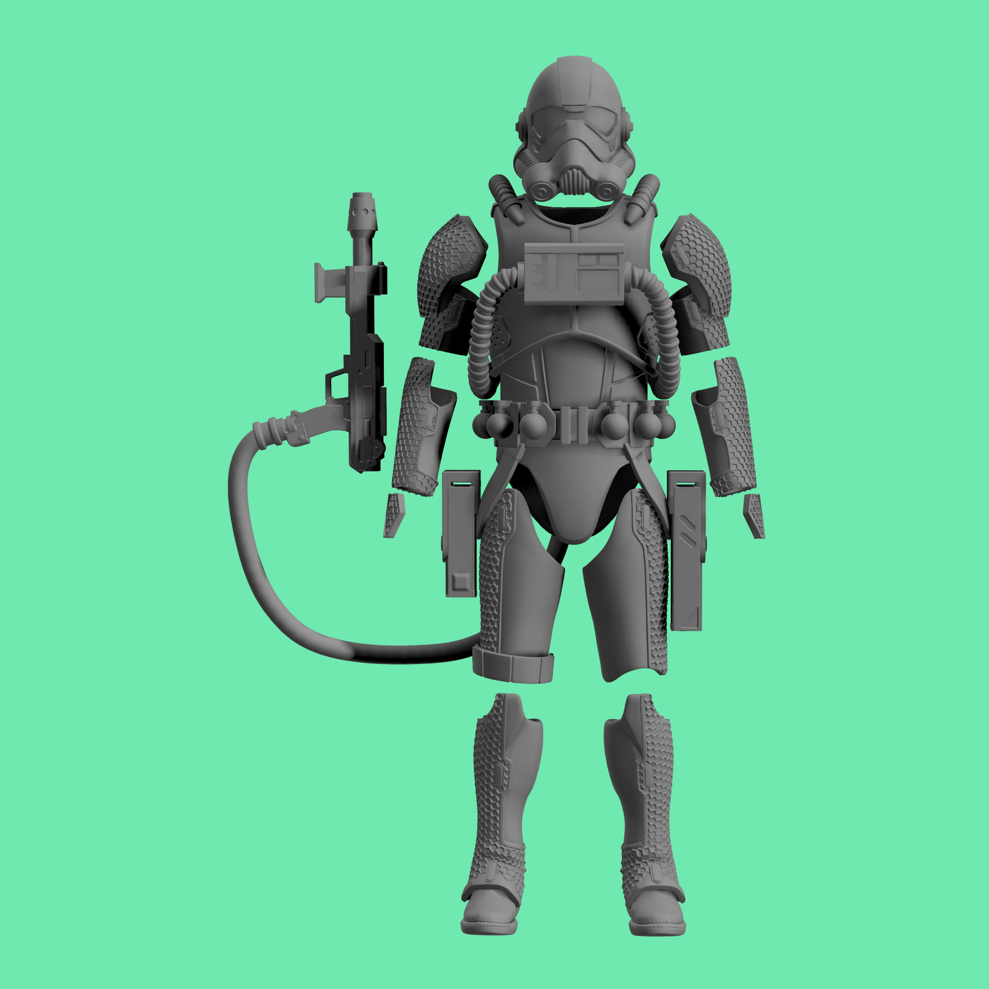 3D printed Shrap armor and accessories for 3.75" and 6" figures.