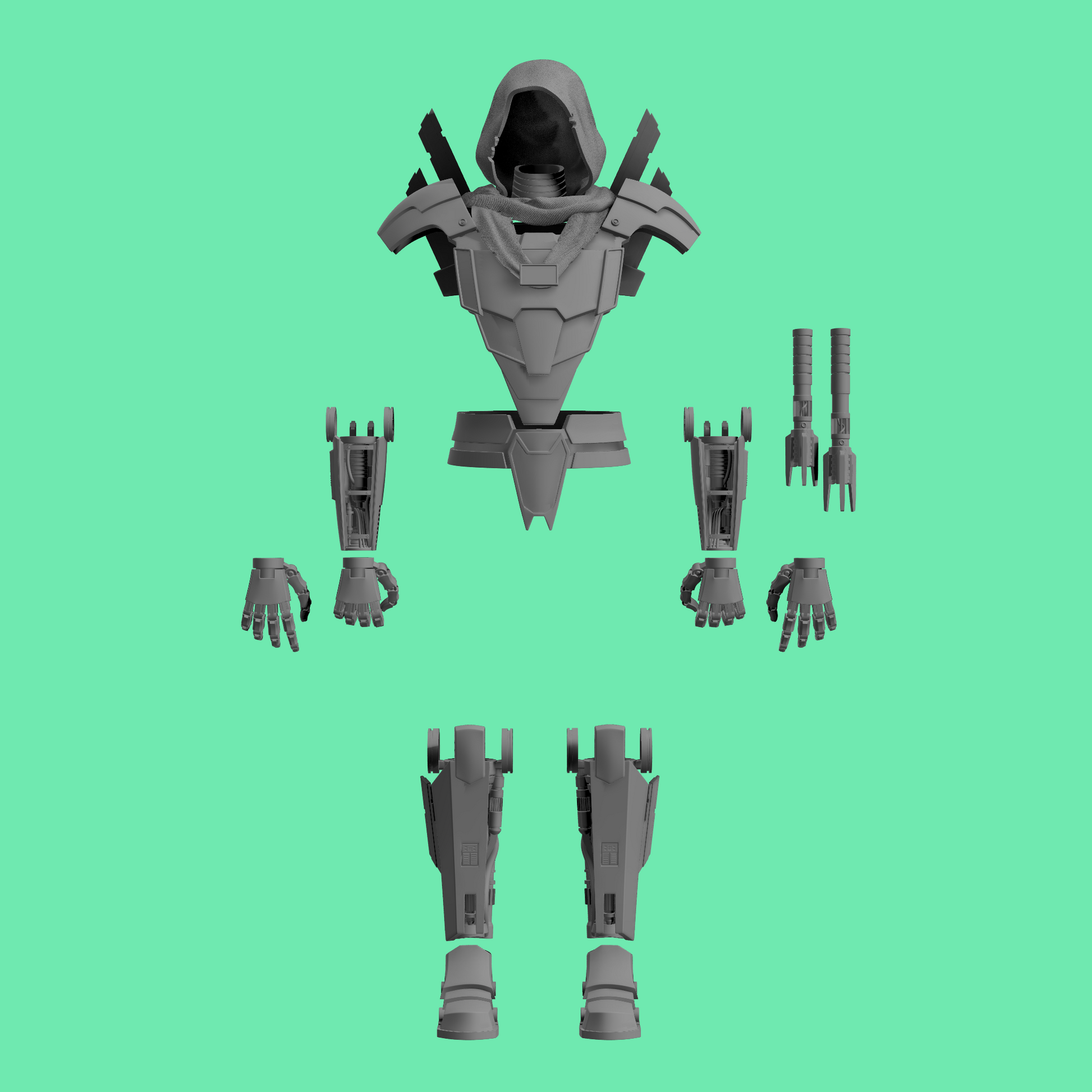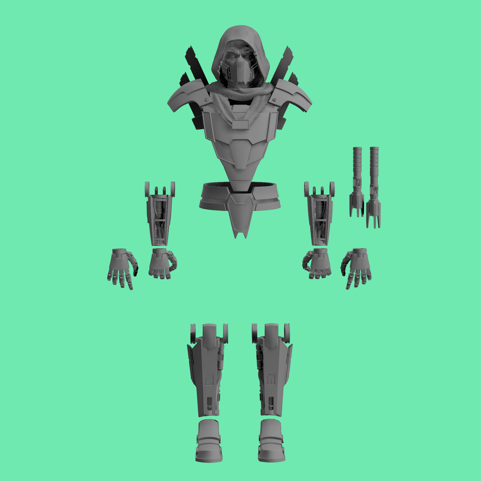 3D printed Sith Concept armor and accessories for 3.75" and 6" figures.