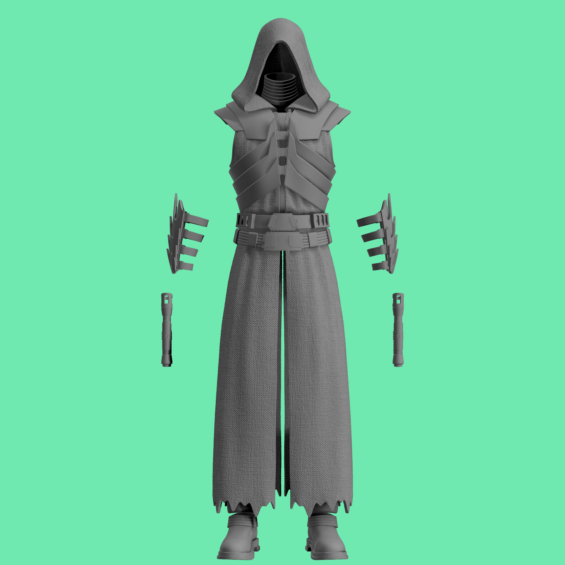 3D printed Starkiller Jedi Hunter armor and accessories for 6" figures.