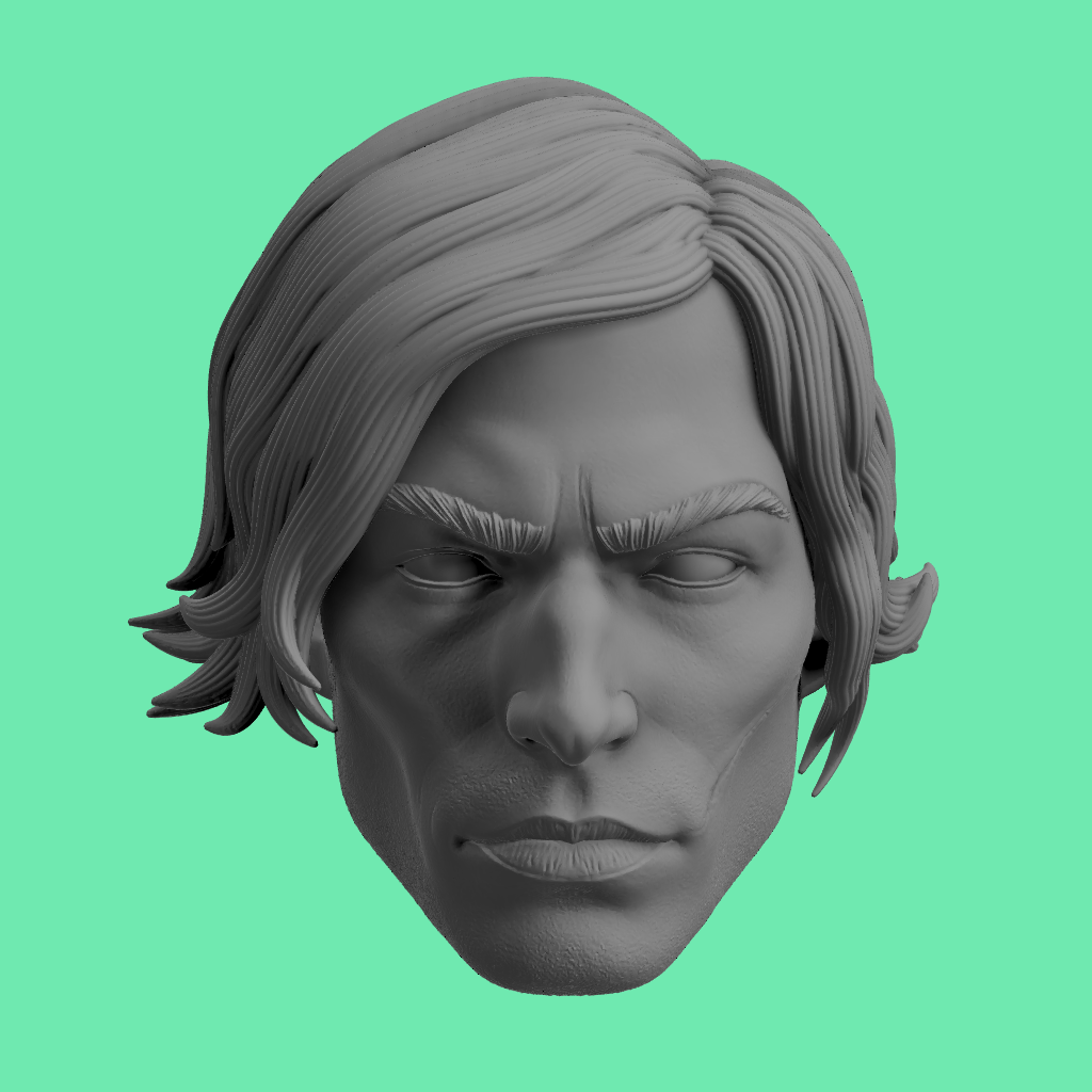 3D printed Stranger (Qimir) head sculpt for 3.75", 6" and 6" Marvel Legends figures.