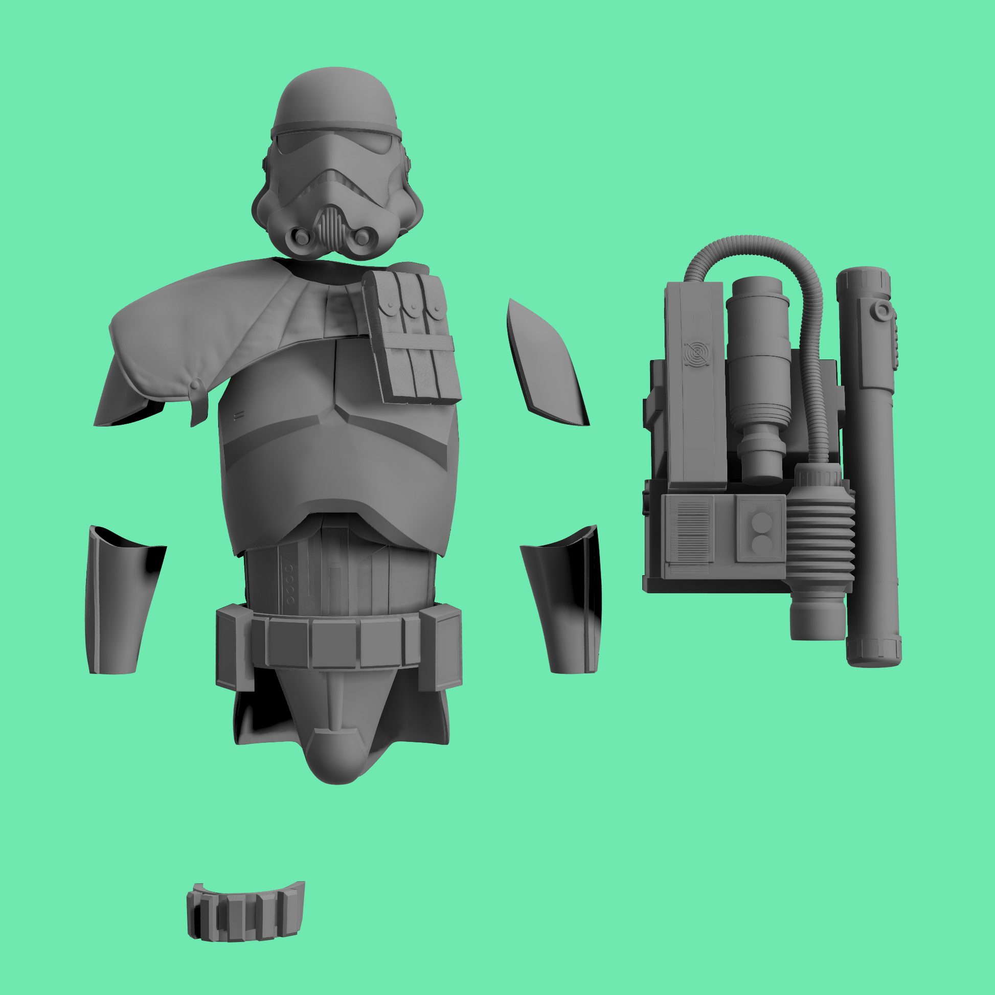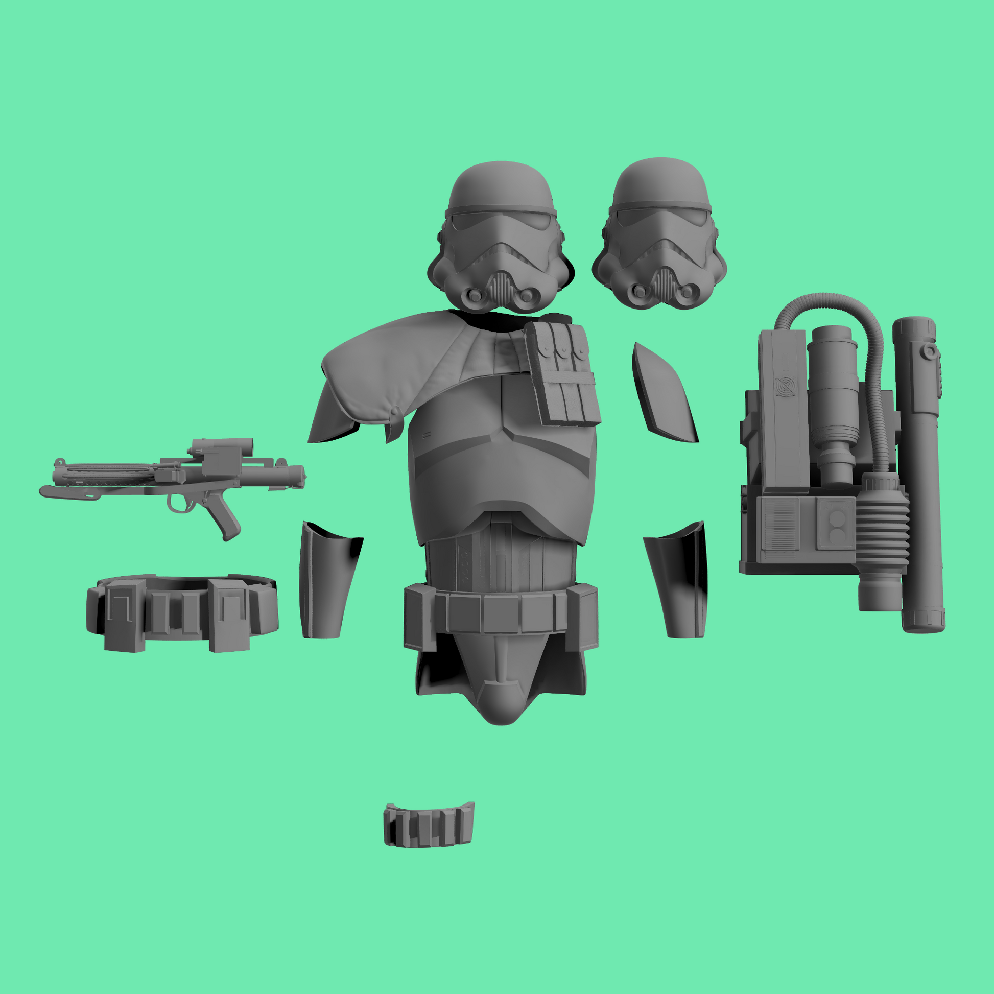 3D printed Triton Squad armor and accessories for 3.75" and 6" figures.