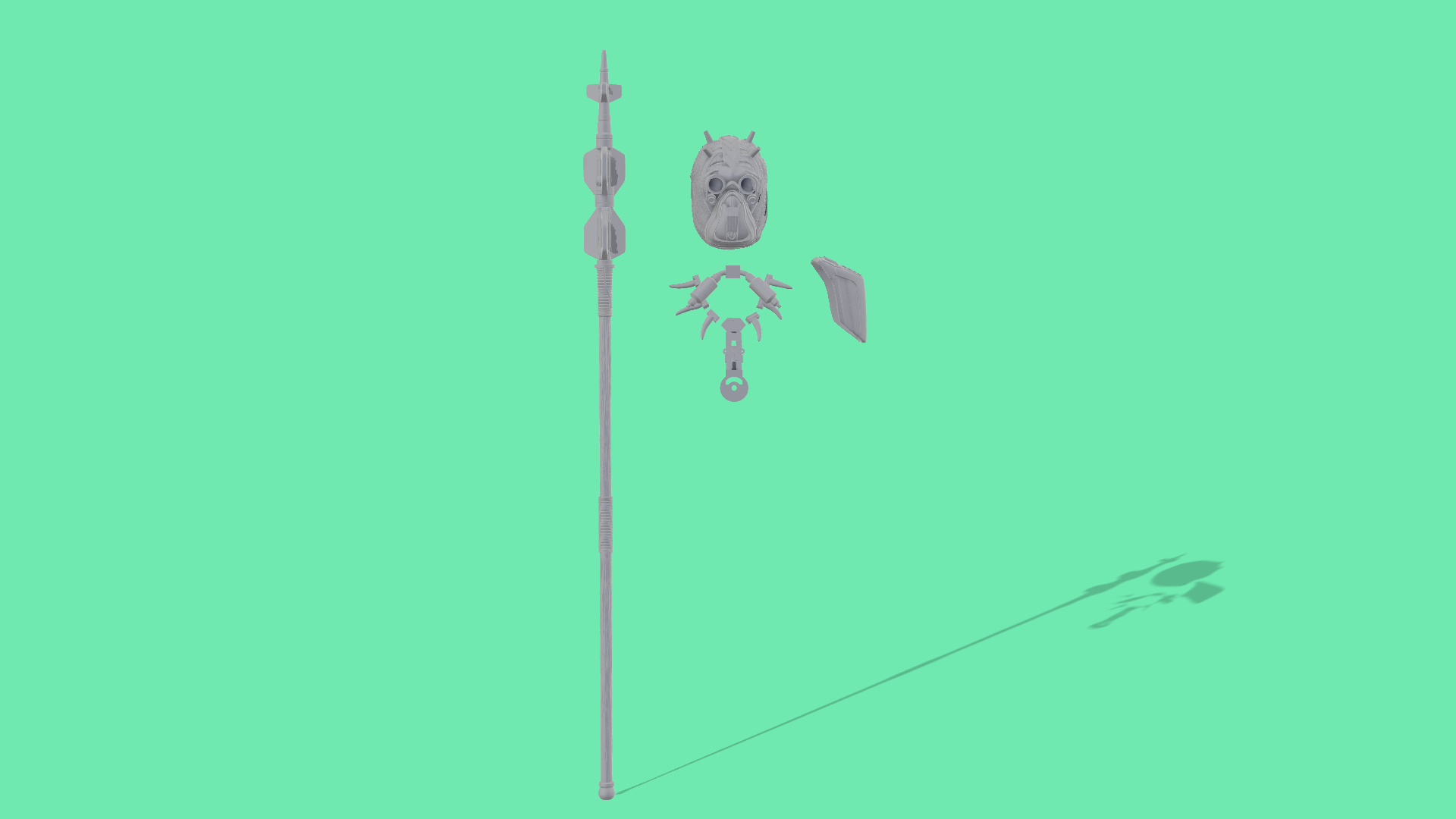 3D printed Tusken Chieftain armor and accessories for 6" and 12" figures.