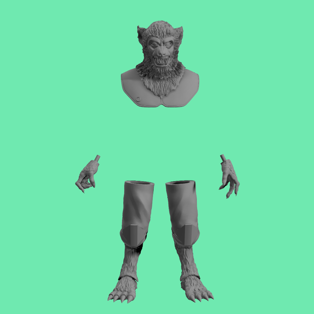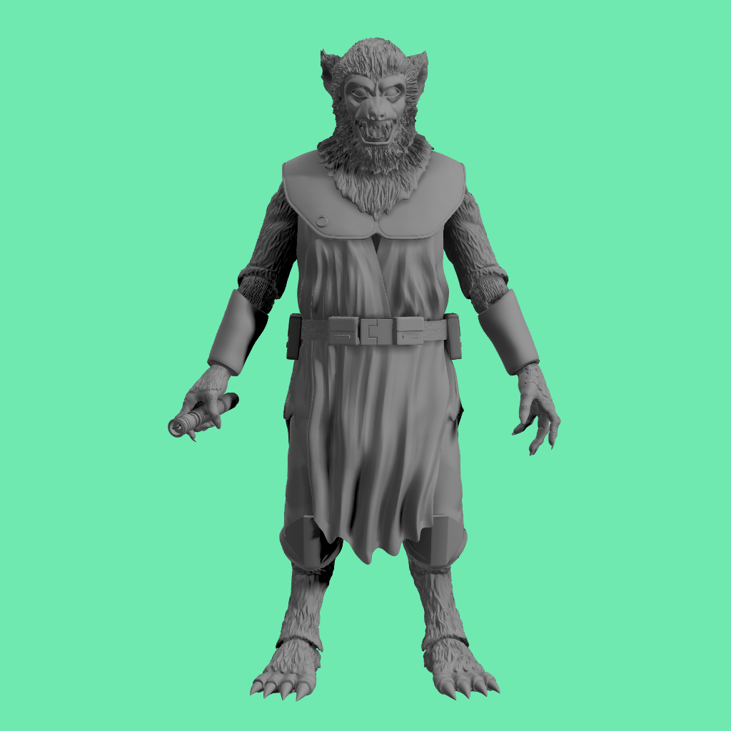 3D printed Voolvif Monn head sculpt and accessories for 3.75" and 6" figures.